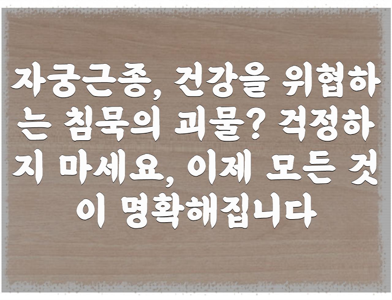 알아보자 :: 자궁근종, 건강을 위협하는 침묵의 괴물? 걱정하지 마세요, 이제 모든 것이 명확해집니다