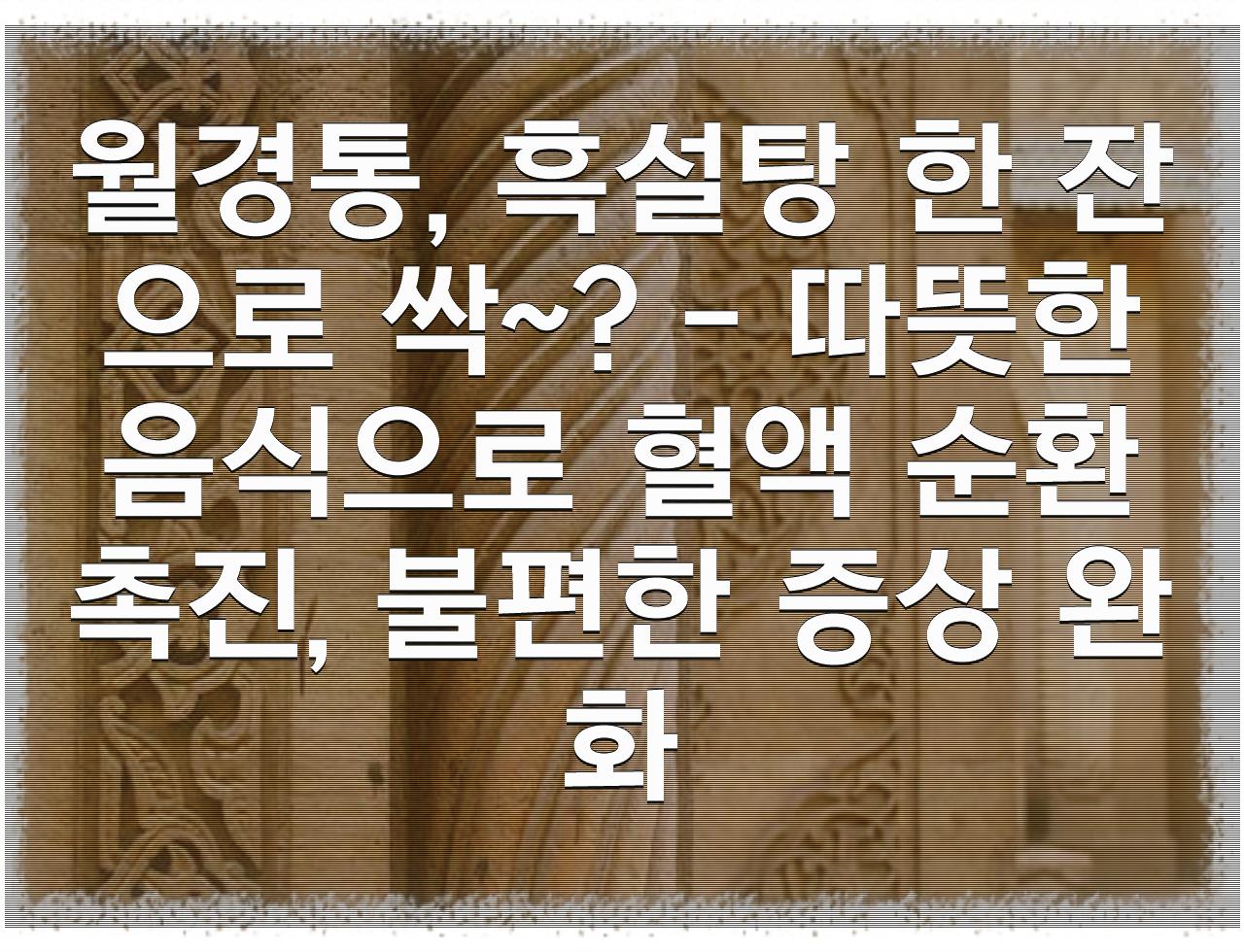 월경은 여성의 건강과 밀접하게 연결되어 있지만, 동시에 불편한 증상들을 동반하기도 합니다. 특히, 생리통은 많은 여성들에게 고통스러운 경험이 될 수 있습니다. 자~ 그럼, 월경통, 흑설탕 한 잔으로 싹~? - 따뜻한 음식으로 혈액 순환 촉진, 불편한 증상 완화 관련 써머리해 드려요~