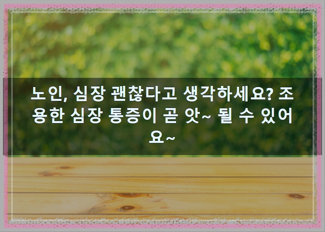 알아보자 :: 노인, 심장 괜찮다고 생각하세요? 조용한 심장 통증이 곧 앗~ 될 수 있어요~